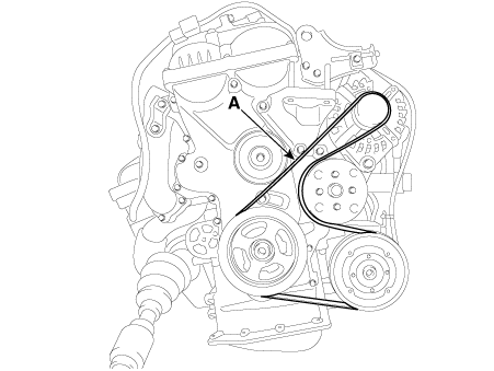 Отрегулируйте натяжение, затянув болт регулировки натяжения генератора (B) и затем установите крепежные болты (А).