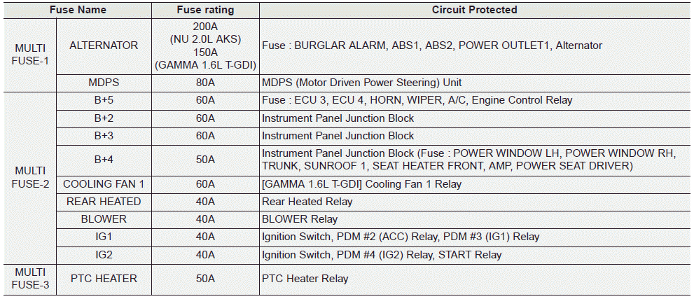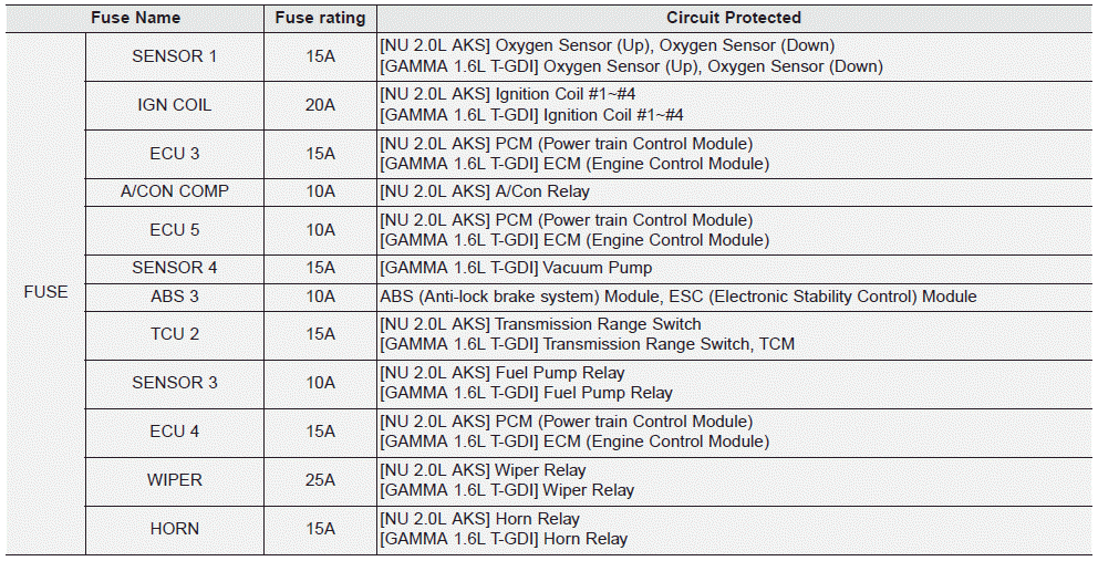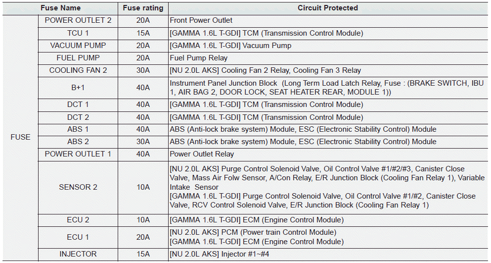 Kia Forte: Предохранители / Блок предохранителей в моторном отсеке