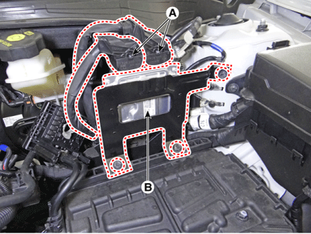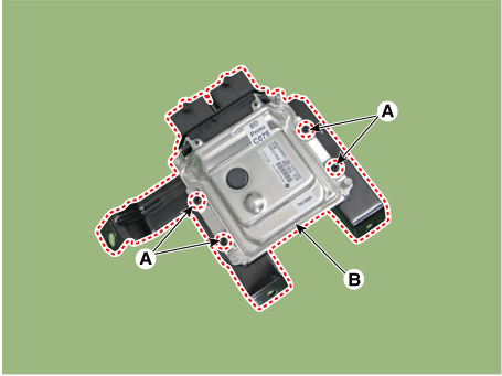 Снимите модуль ECM (B), ослабив крепежные гайки (A) на кронштейне.