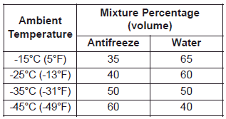 Проверьте защиту от замерзания и уровень охлаждающей жидкости не реже одного раза в год: при начало зимнего сезона, и перед поездкой в более холодный климат.