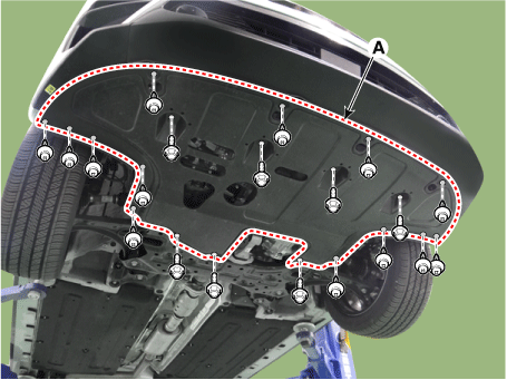 Снимите крышку машинного отделения (A).