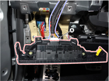Снимите панель переключателей боковой накладки (A) после ослабления крепления. винты.