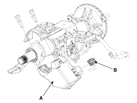 Снимите электронный замок рулевой колонки (А), ослабив крепления болты после отсоединения разъема (B).