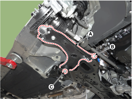 Снимите нижний рычаг (А) с подрамника.
