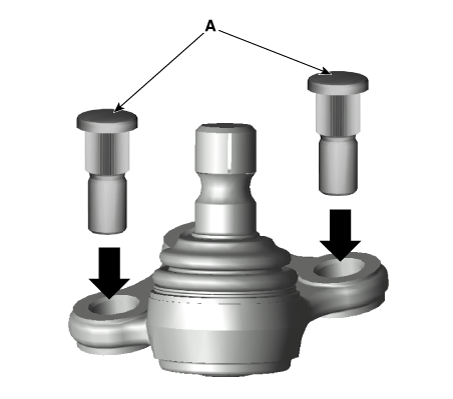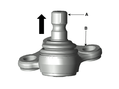 Проверьте осевой свободный ход шаровой шпильки (A). В случае наличия любого свободного хода, замените шаровой шарнир (B).