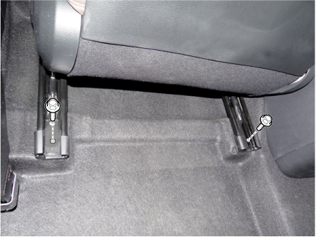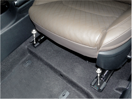 Откройте крышку и ослабьте болты крепления переднего сиденья. [Передний]