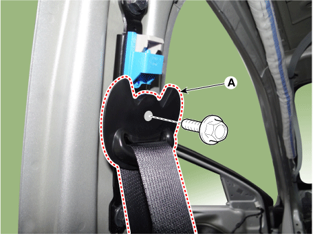 Ослабив болт крепления верхнего анкера переднего ремня безопасности, снимите верхнее крепление переднего ремня безопасности (A).