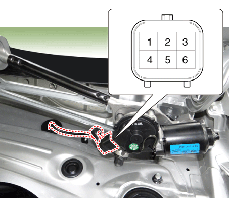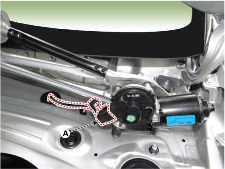 Отсоедините разъем электродвигателя стеклоочистителя (А).