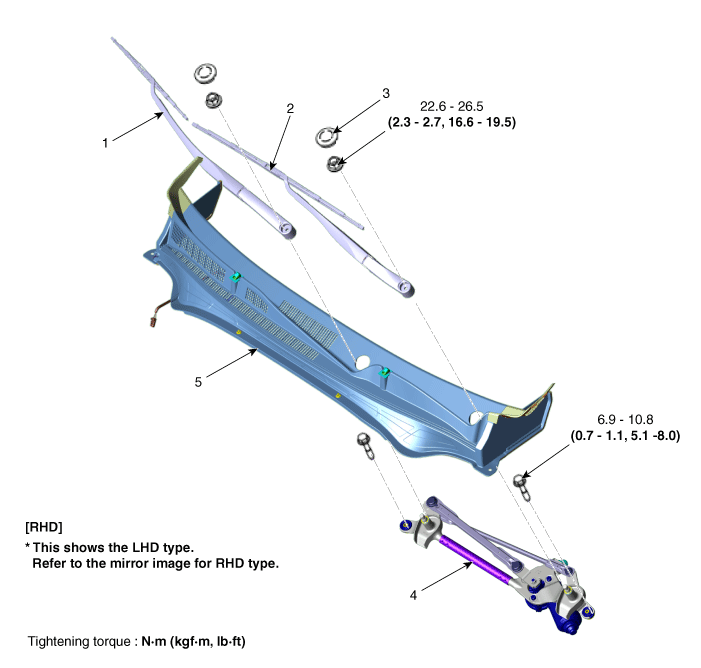 2. Рычаг и щетка стеклоочистителя (водитель) 3. Крышка рычага стеклоочистителя |