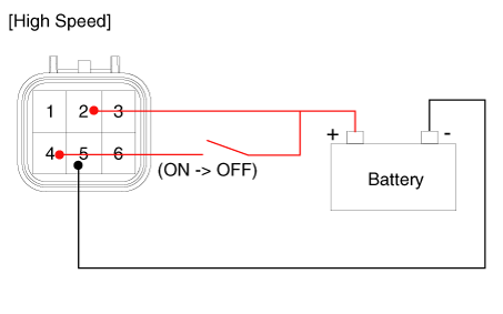 Подсоедините положительный (+) провод аккумулятора к клемме 2, а отрицательный (-) ведут к терминалу 5.