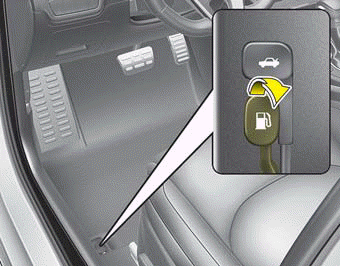 Крышка бензобака должна быть открыта изнутри автомобиля, потянув вверх открыватель крышки бензобака.