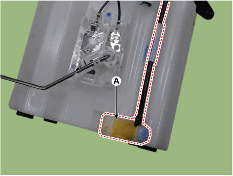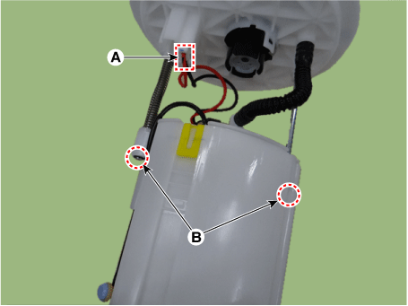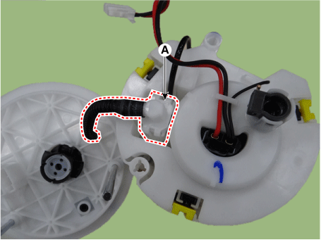 Отсоедините разъем электродвигателя топливного насоса (А). |