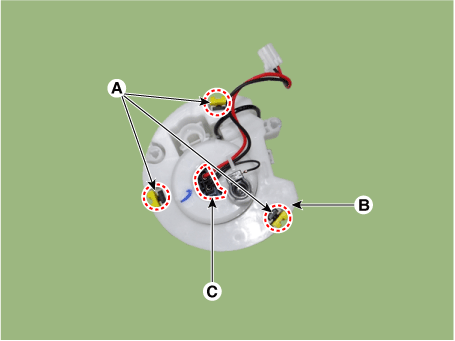 Отсоедините разъем электродвигателя топливного насоса (С).
