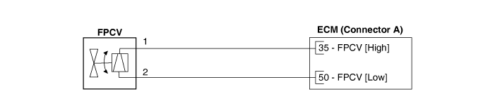 Измерьте сопротивление между клеммами клапана управления давлением топлива. 1 и 2. |
