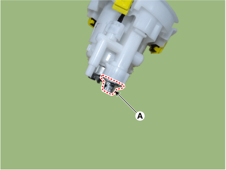 Отсоедините разъем электродвигателя топливного насоса (А). |