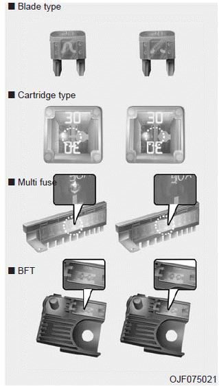 Если сменный предохранитель перегорает, это указывает на проблему с электрикой. Избегать с помощью задействованной системы и немедленно проконсультируйтесь с авторизованным киа дилер.