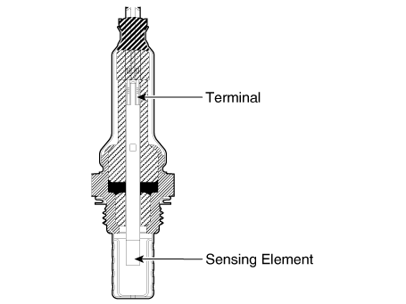 Датчик кислорода с подогревом (HO2S) состоит из циркония и оксида алюминия и устанавливается как до, так и после коллекторного каталитического нейтрализатора. Выход датчика напряжение меняется в зависимости от соотношения воздух/топливо.