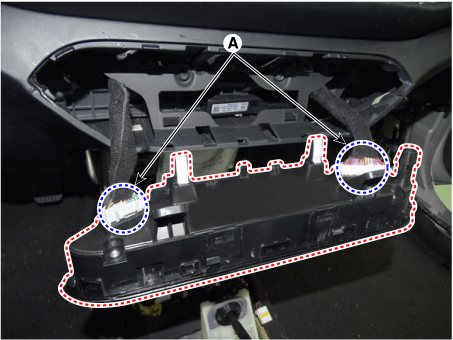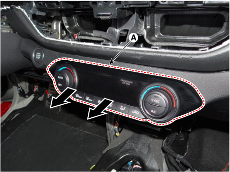 Отсоедините разъемы контроллера кондиционера и отопителя (А).
