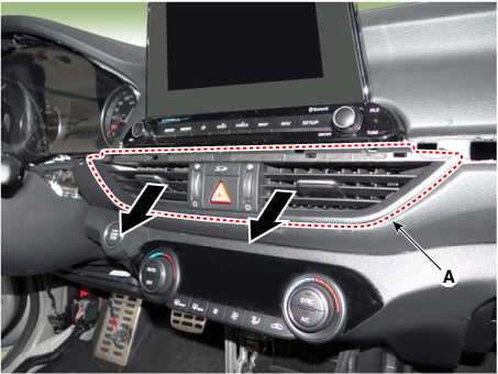 Отсоедините разъем центрального вентиляционного отверстия (А).