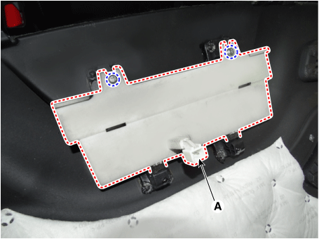 Снимите заднюю отделку лотка для пакетов. (См. Кузов — «Облицовка заднего лотка») |