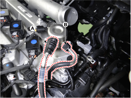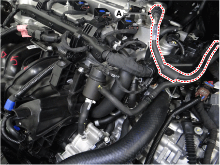 Отсоедините быстроразъемный разъем топливопровода низкого давления (А).