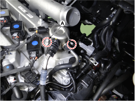 Снимите крепежные болты (А), а затем снимите топливный бак высокого давления. насос от головки блока цилиндров в сборе.