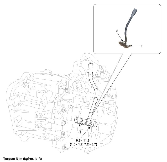 Снимите датчик входной скорости (А), ослабив болты после отсоединения. разъем (В).