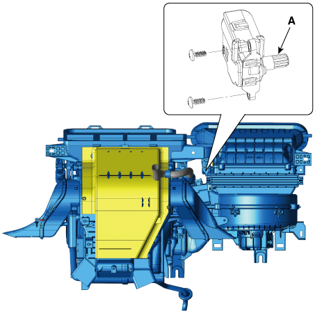 Отсоедините разъем, а затем снимите впускной привод (А) после ослабление крепежных винтов.
