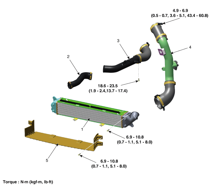 2. Впускной шланг интеркулера 3. Впускной шланг и трубка промежуточного охладителя |