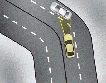 Производительность FCA может быть ограничена при движении по кривой. FCA может не распознать впереди идущее транспортное средство даже если в той же полосе. Он может производить предупреждающее сообщение и предупреждающий сигнал преждевременно, или он может не выводить предупреждающее сообщение или предупредительная сигнализация вообще. Во время вождения на повороте будьте осторожны, соблюдать безопасный тормозной путь, и при необходимости нажать на тормоз педаль для снижения скорости движения в чтобы соблюдать безопасную дистанцию.