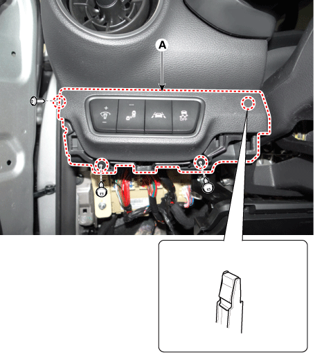 Ослабьте крепежные винты и снимите боковой переключатель аварийной подушки (А).