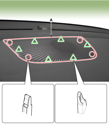 С помощью отвертки или съемника снимите решетку центрального динамика (А).