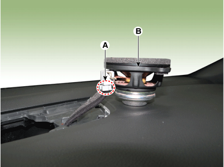 Отсоедините разъем (А) и снимите центральный динамик (В).