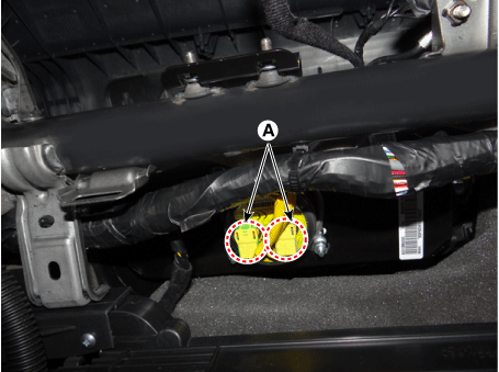 Ослабьте болты крепления и снимите подушку безопасности пассажира (А).