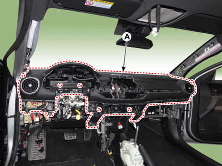 Снимите нижнюю панель аварийной подушки. (См. Crash Pad — «Нижняя панель Crash Pad») |