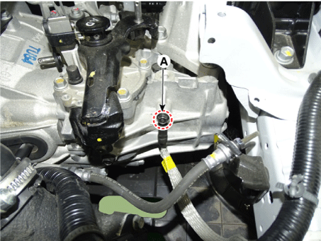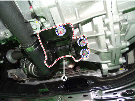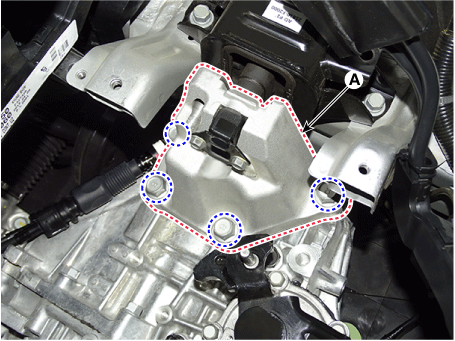 Снимите крепежные болты (А) с опорного кронштейна коробки передач.
