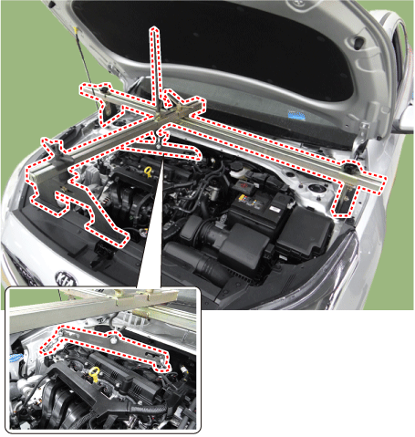 Соберите опору двигателя в машинном отделении. (См. Специальные сервисные инструменты — «Сборочный чертеж крепления опоры двигателя») |