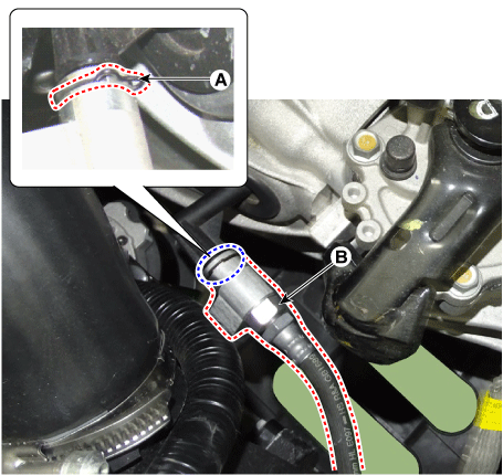 Отсоедините трубку сцепления (В) после снятия зажима (А).