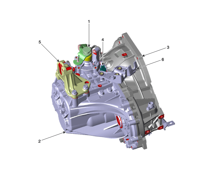 5. Опорный кронштейн механической коробки передач 6. Кронштейн кабеля управления |
