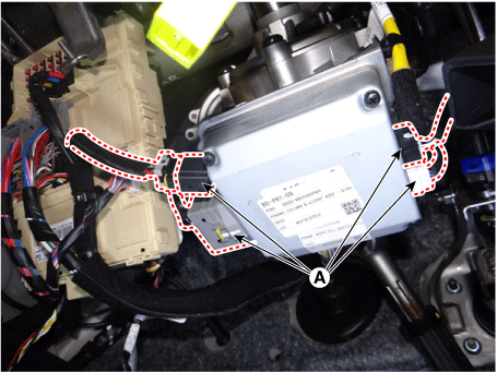 Отсоедините разъемы ЭБУ MDPS (А).