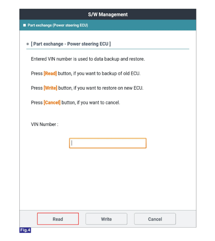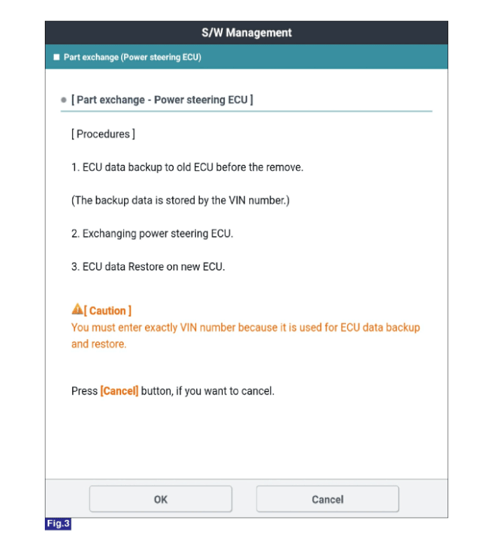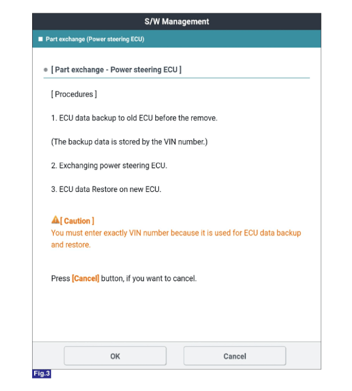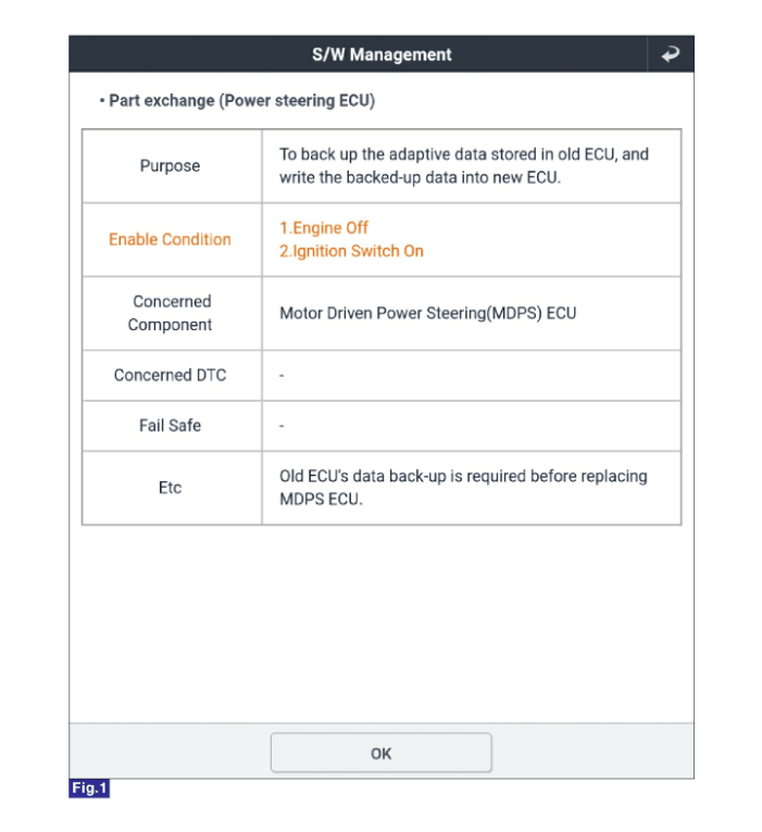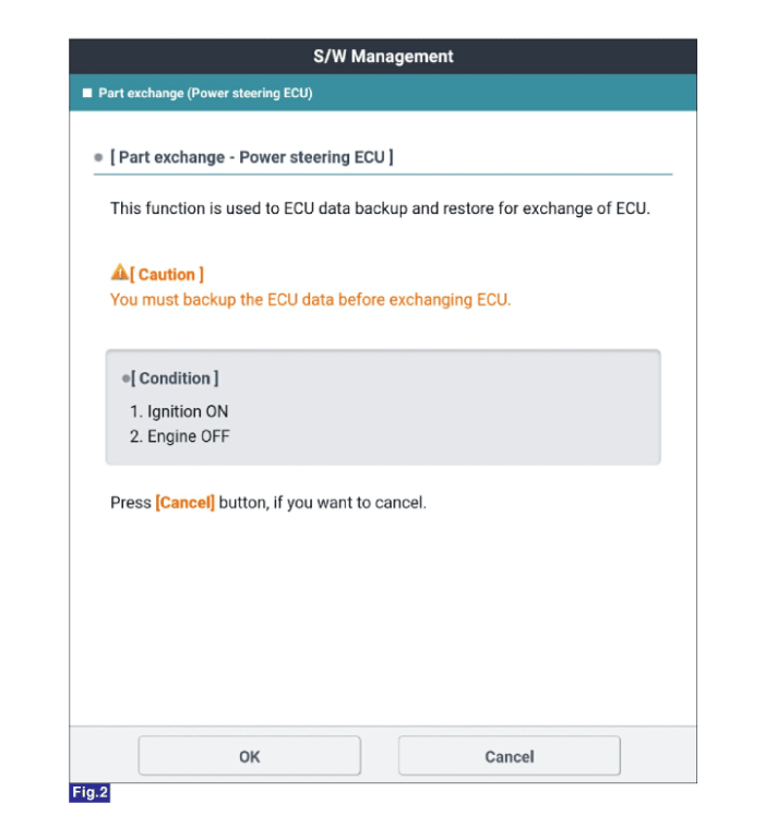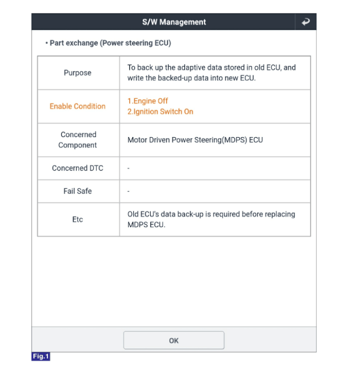 Выберите «Замена детали (ЭБУ усилителя рулевого управления)» на экране KDS,
