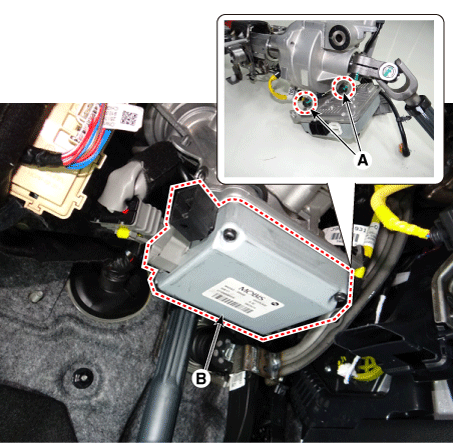 Ослабьте крепежные болты (А) и снимите ЭБУ MDPS (В).