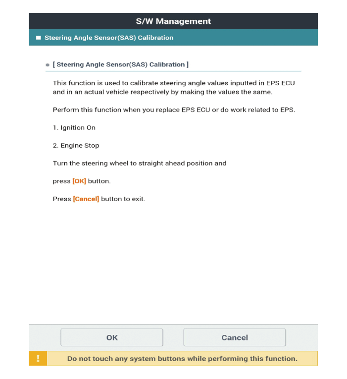 Выберите «Калибровка датчика угла поворота рулевого колеса (SAS)» на экране KDS, затем