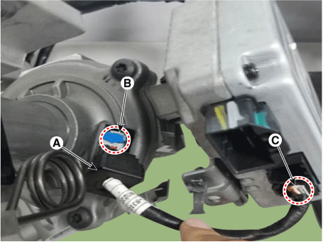 Снимите втулку (A) и проверьте проводку со стороны TAS. (B) и со стороны ЭБУ (C).