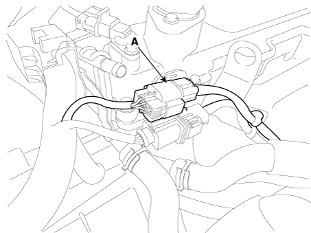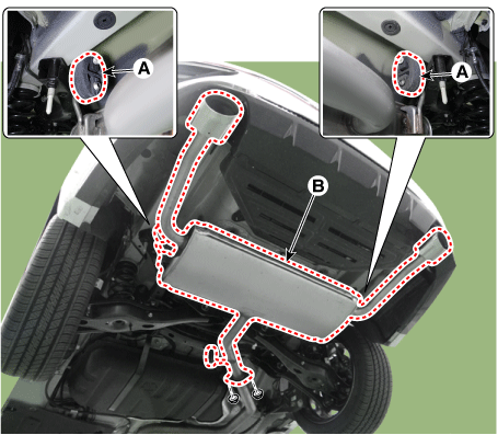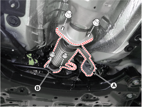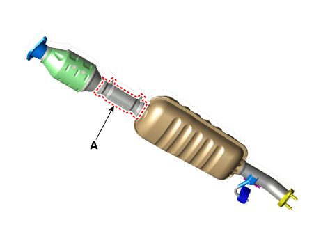 Отсоедините резиновую подвеску (А) от каталитического нейтрализатора и центрального глушителя. |