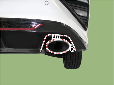 Запишите зазор (A, B) между выхлопной трубой (или обшивкой хвоста) и задней частью. бампер.