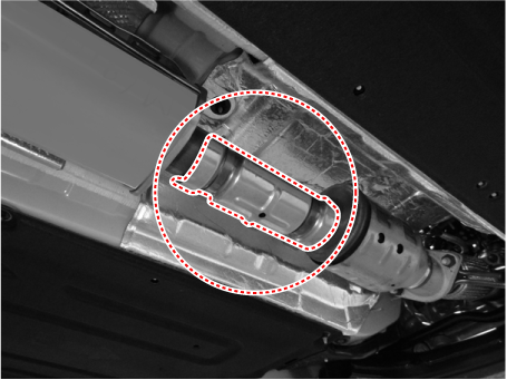 Отсоедините резиновую подвеску (А) от заднего глушителя. |
