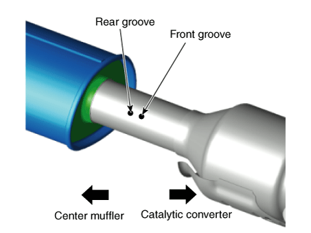 Убедитесь, что зажимная часть центрального узла глушителя не повреждена. или деформируется. Если глушитель слишком корродирован, чтобы его можно было зажать, замените центральную часть. глушитель в сборе.