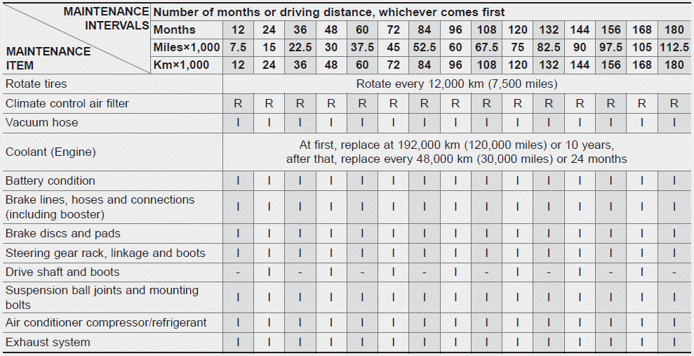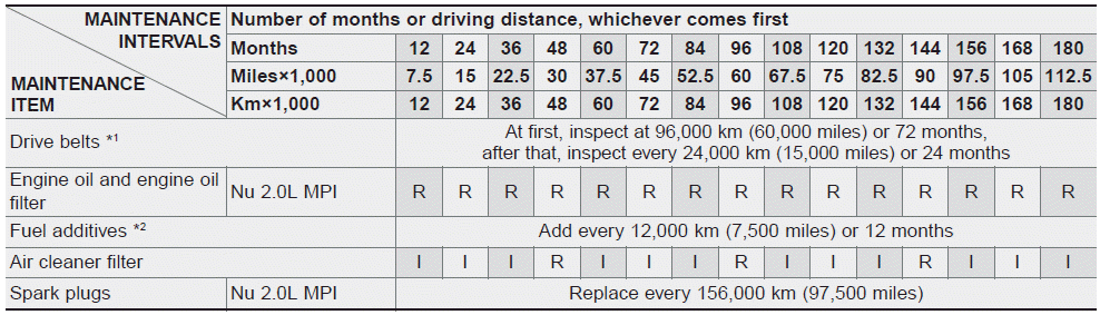 Kia Forte: плановое техническое обслуживание / график обычного технического обслуживания — модели без турбонаддува