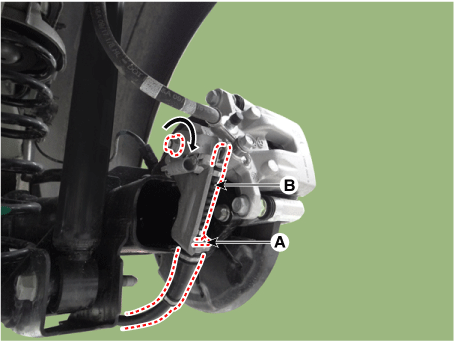 Снимите трос стояночного тормоза (А), предварительно сняв зажим (В).